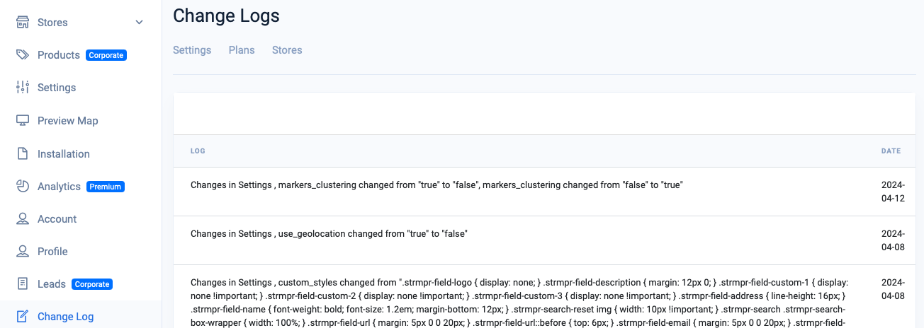 Your store locator comes with a Change Log that will allow you to track and review any changes made within your Storemapper account.
