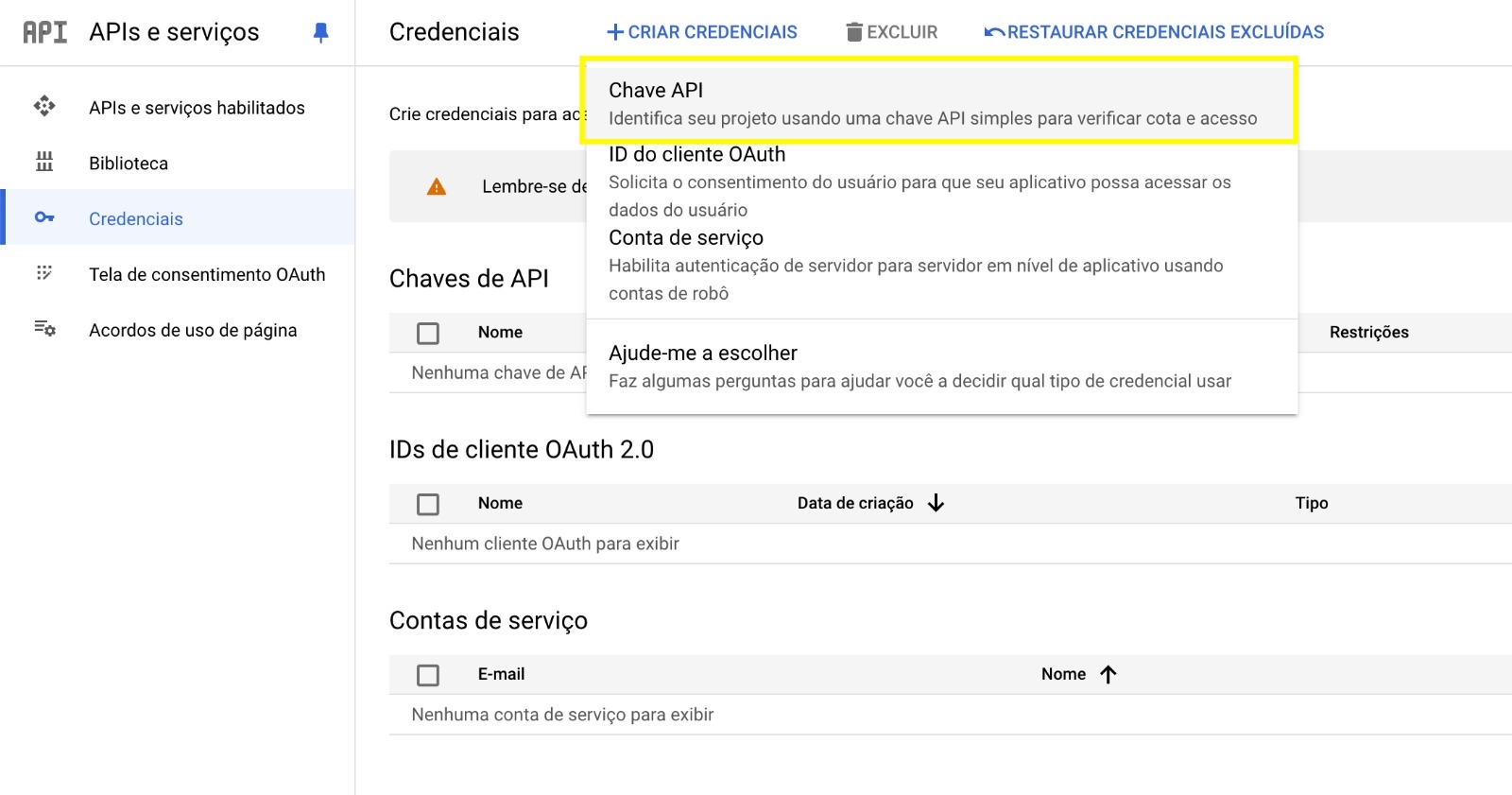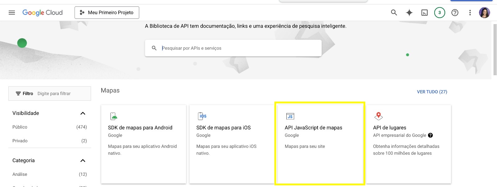 Siga os passos abaixo para configurar e adicionar sua chave de API do Google Maps: